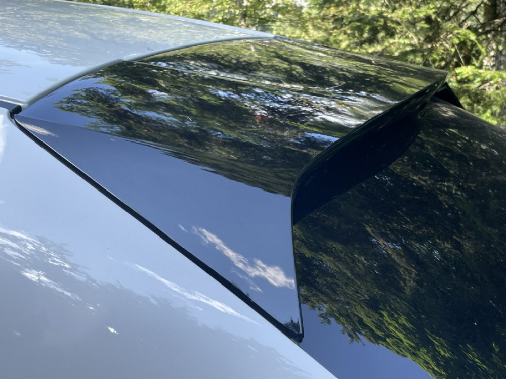 Предната маска, обликувана како отворена вилица на ајкула, делува уште поостро, додека страничната линија високо и стрмно се издигнува кон задниот дел. Задниот дел ја одбележува тесното стакло на вратата од багажникот и издолжените ЛЕД светлосни групи, под кои доминираат две елегантно оформени издувни цевки. Црно-белата комбинација на тест-моделот е одличен избор, бидејќи јасно ги истакнува сите овие дизајнерски детали.