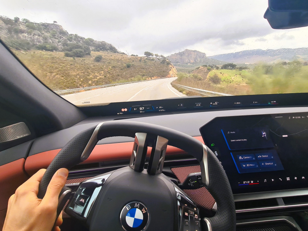 iX3 се докажа и во тешки услови. Додека брзавме по влажните кривулести патишта околу Малага и Ронда, добро ги доживеав неговите возни карактеристики. Електричните автомобили обично не се познати по возачкото искуство, но во iX3 тоа е изненадувачко. Управувањето е одлично. Воланот обезбедува одлично чувство на контакт со површината, што е реткост кај електричните автомобили. Управувањето е прецизно и реагира дури и на најмало движење на воланот, обезбедувајќи чувство на постојана поврзаност со предните тркала и целосна контрола врз возилото.