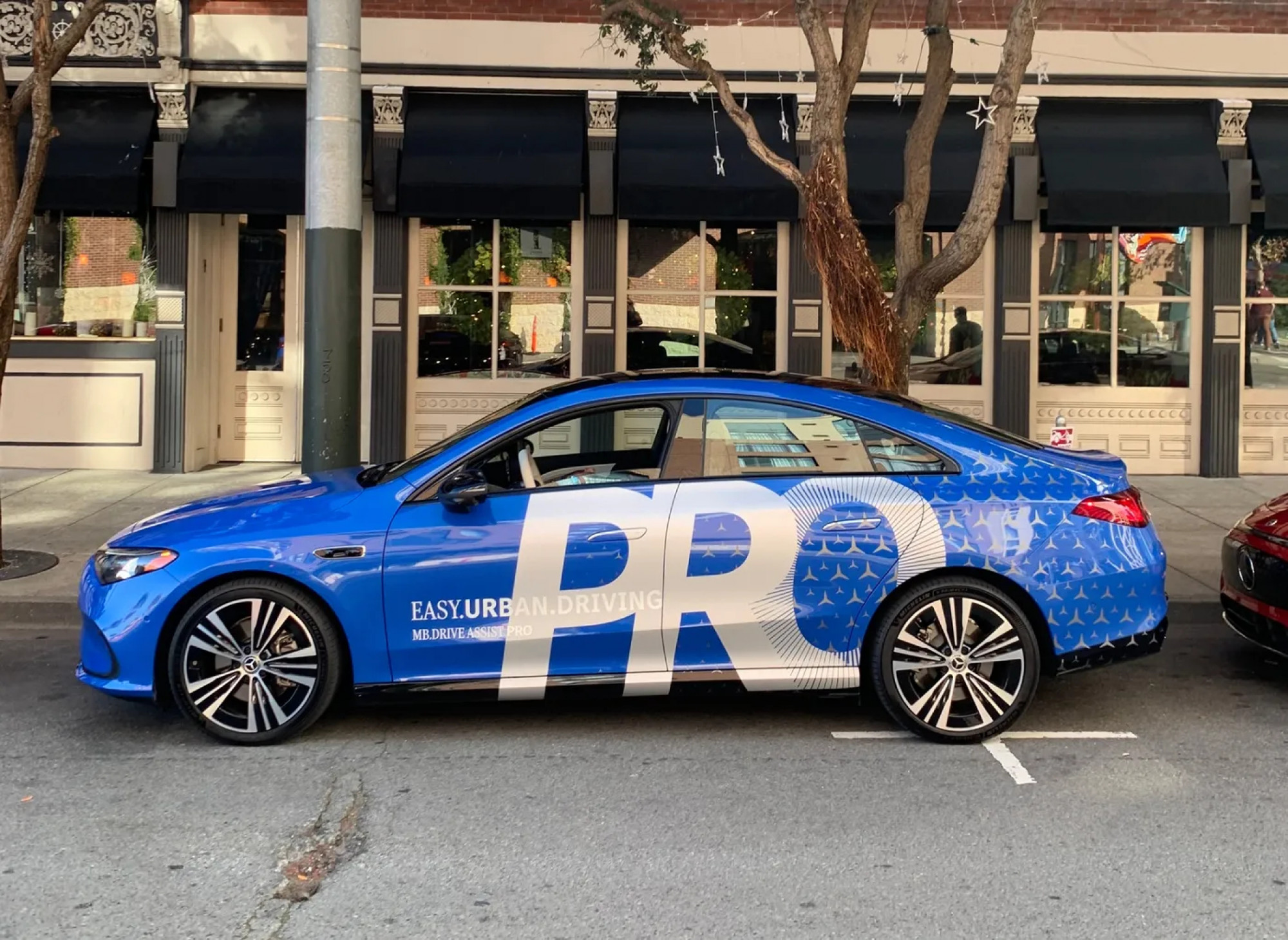 Пробната возачка сесија се состоеше од два дела. Во првиот дел го возев автомобилот со помош на помалку напредниот систем „МБ.Драјв Асист“, кој користи комбинација од многу сложени алгоритми и ВИ-модели од типот end-to-end, што му помагаат на автомобилот самостојно да се движи по автопати и градски улици. Системот веќе е достапен низ целата понуда на „Мерцедес“, но и понатаму бара повремена човечка интервенција, како држење рака на воланот. Услугата чини 1.950 долари и се плаќа еднократно.