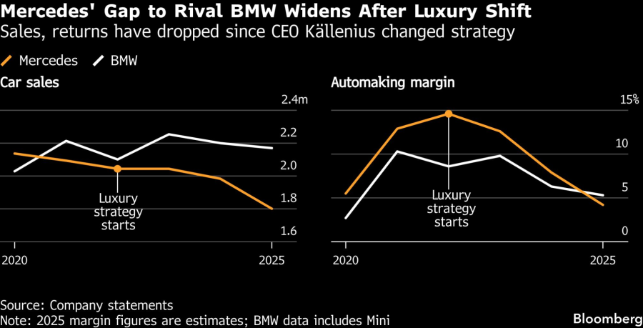 Слабоста во Кина, најголемиот пазар на брендот, е особено загрижувачка бидејќи локалните производители ги освојуваат пребирливите купувачи со удобност и префинетост - карактеристики што некогаш беа заштитен знак на „Мерцедес“.