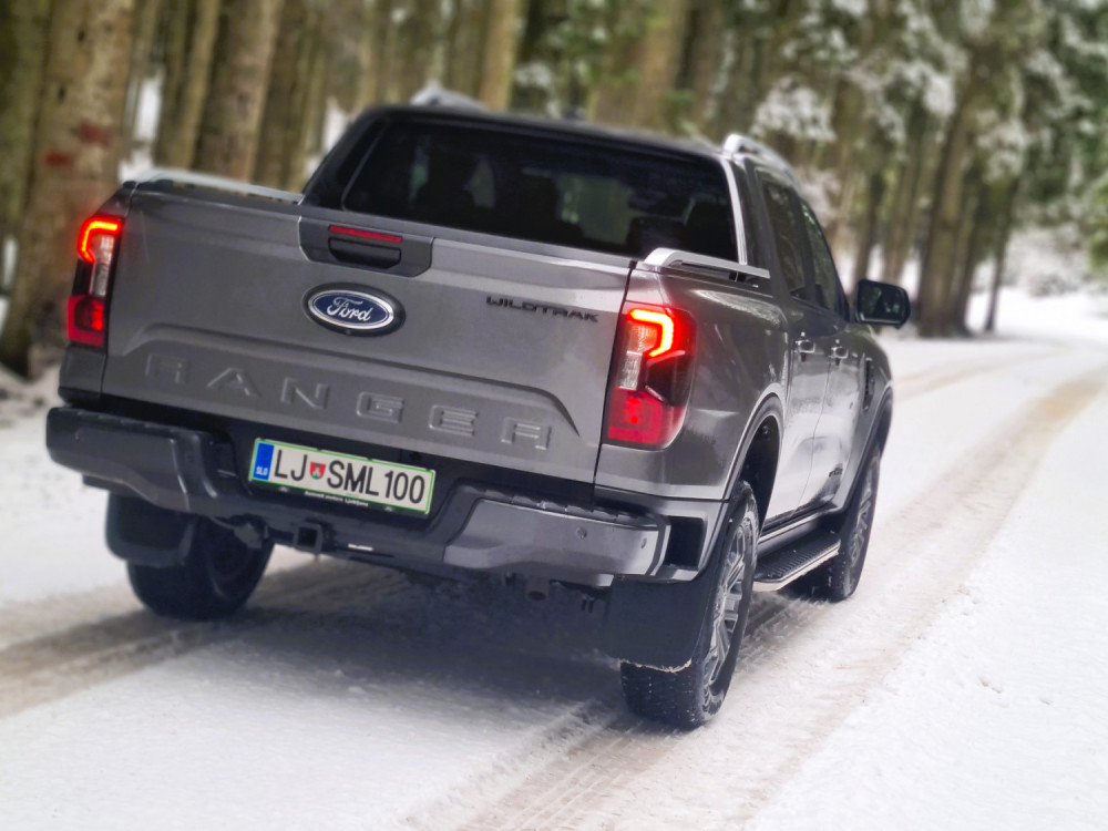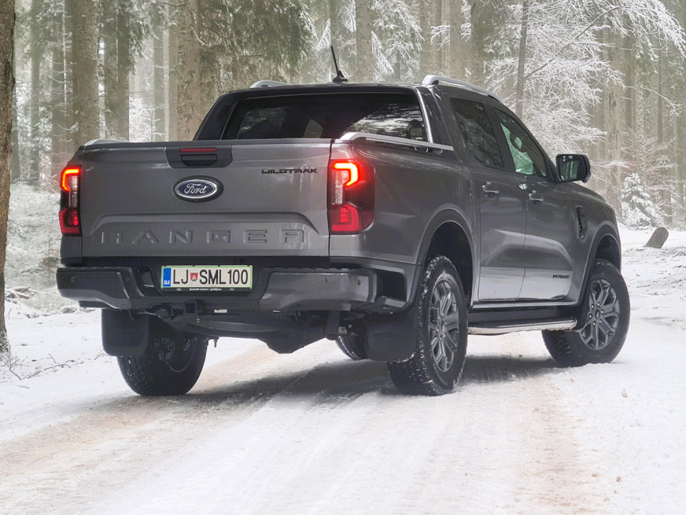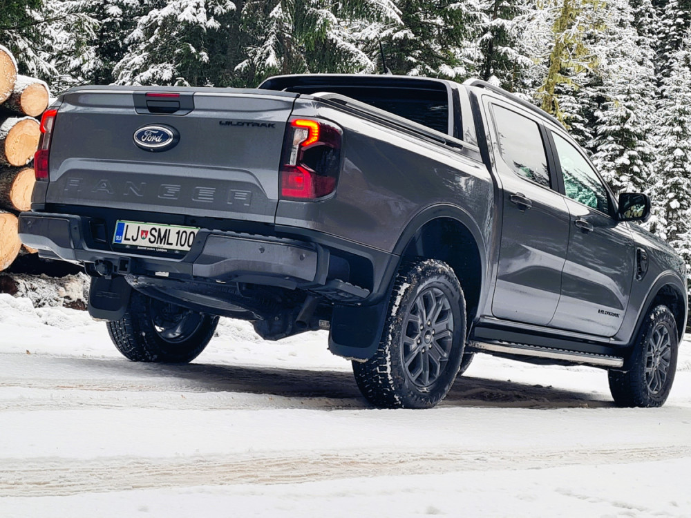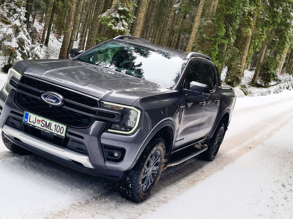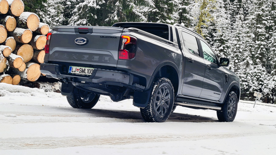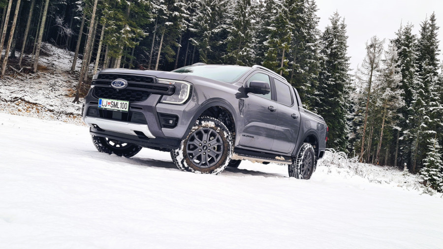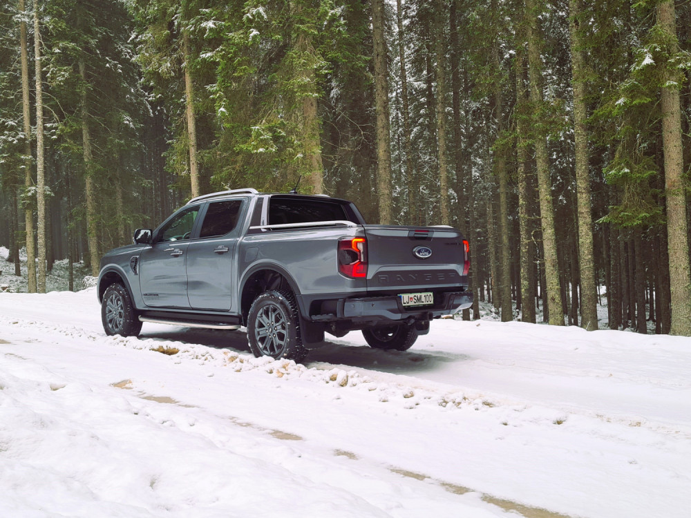 Најчесто возев само со погон на задните тркала. На влажни патишта, програмата 4A е практична. Со електронска спојка за погон на предните тркала, предниот погон се вклучува само кога е потребно. Постојаниот погон на сите тркала се вклучува со ознаката 4H. За да проверам што може да направи, тргнав по калливиот пат на Покљука. За тешки услови, достапни се четири програми за возење, кои се избираат преку ротирачки прекинувач на централниот гребен. „Ренџерот“ полека и упорно се искачуваше по доста стрмниот пат, а кога застана, го вклучив редукторскиот менувач (4L).