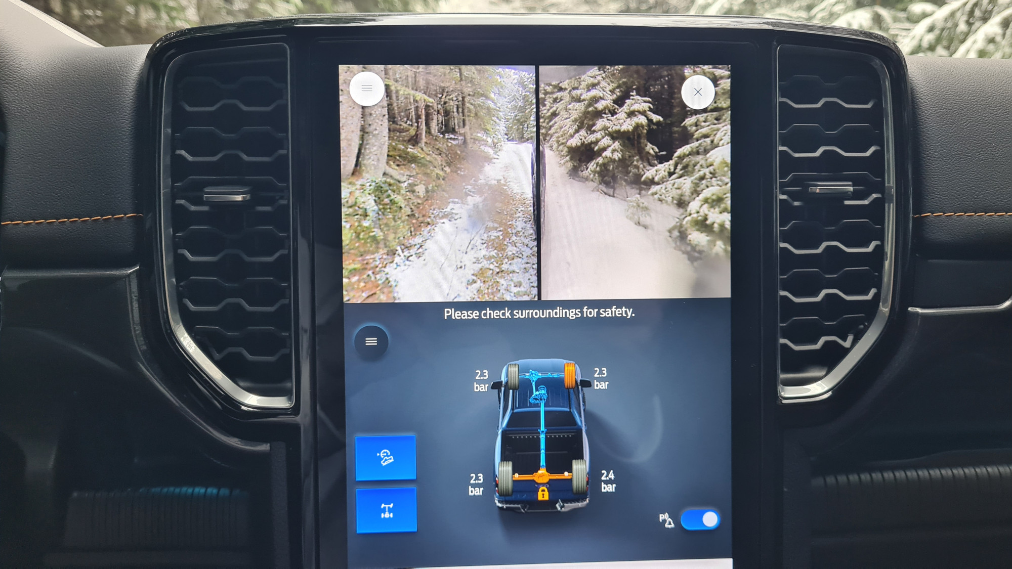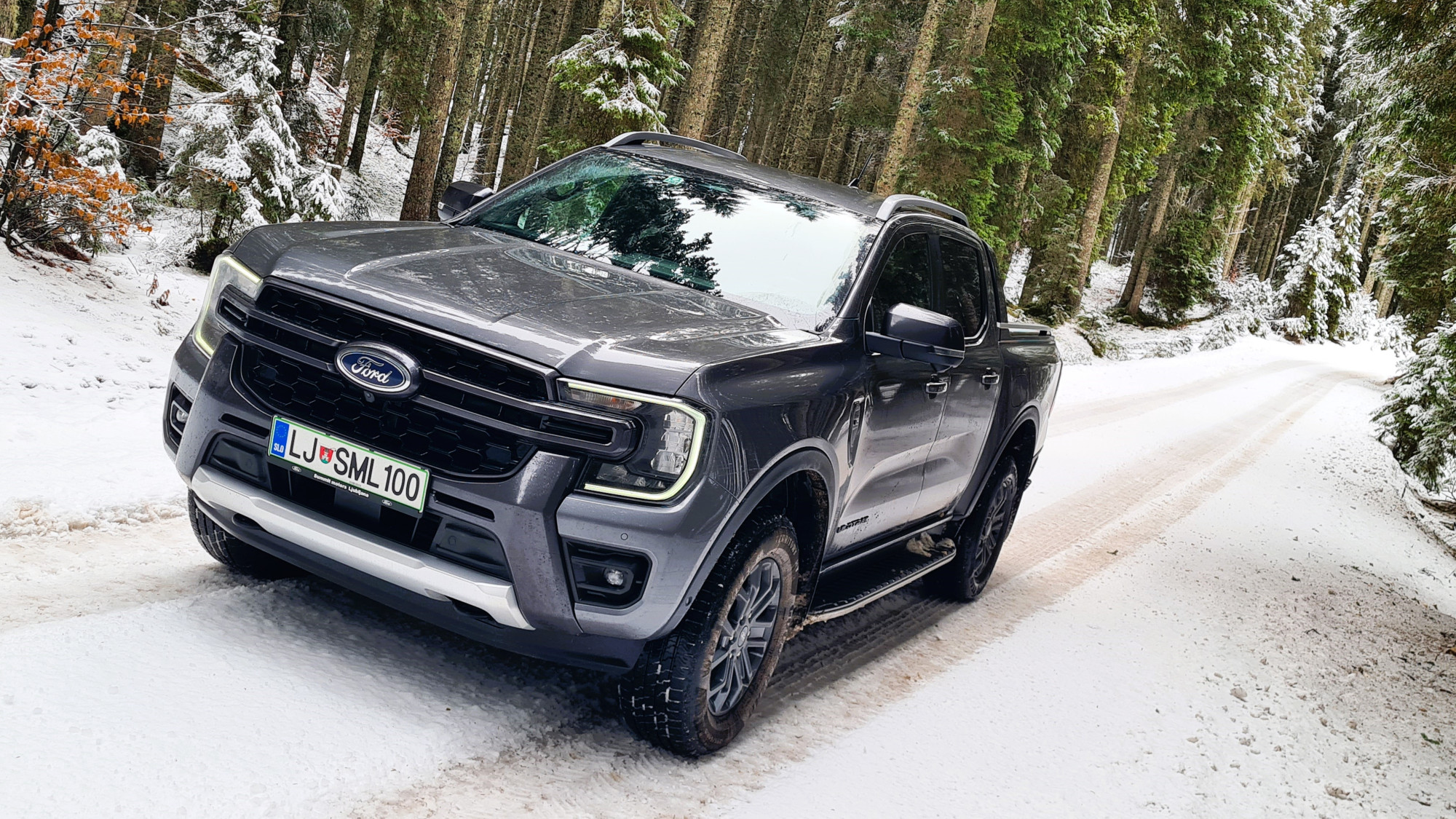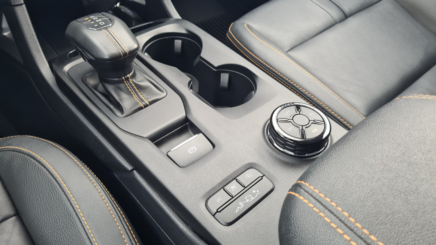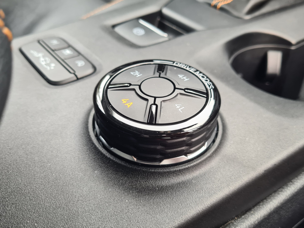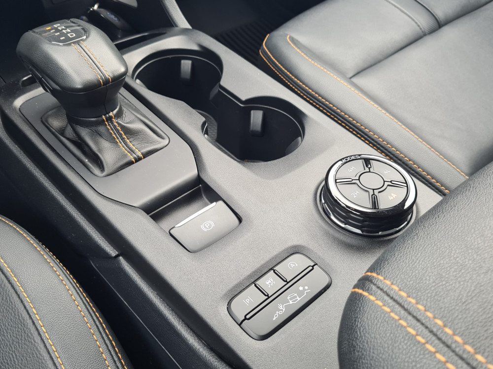 Најчесто возев само со погон на задните тркала. На влажни патишта, програмата 4A е практична. Со електронска спојка за погон на предните тркала, предниот погон се вклучува само кога е потребно. Постојаниот погон на сите тркала се вклучува со ознаката 4H. За да проверам што може да направи, тргнав по калливиот пат на Покљука. За тешки услови, достапни се четири програми за возење, кои се избираат преку ротирачки прекинувач на централниот гребен. „Ренџерот“ полека и упорно се искачуваше по доста стрмниот пат, а кога застана, го вклучив редукторскиот менувач (4L).