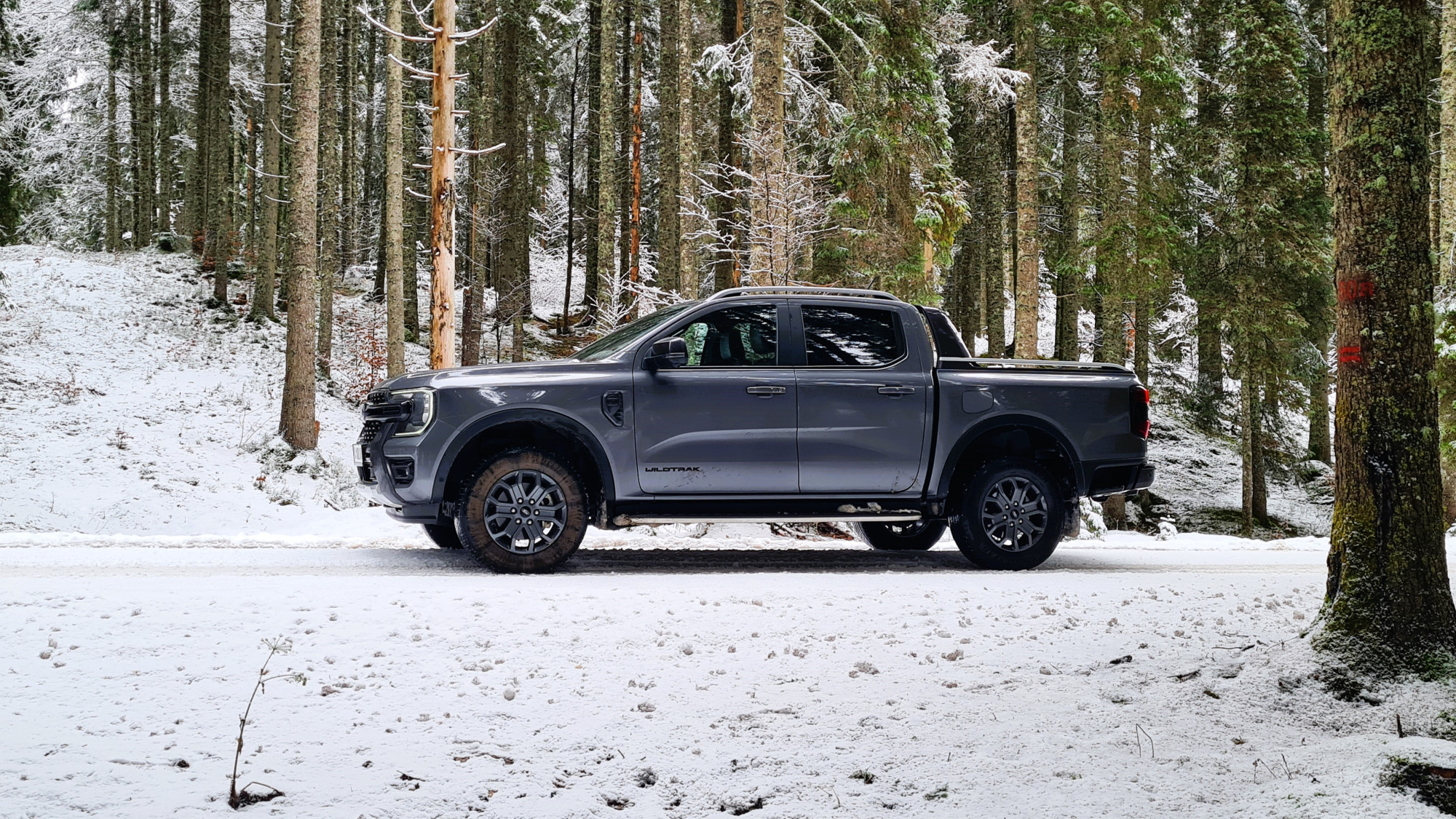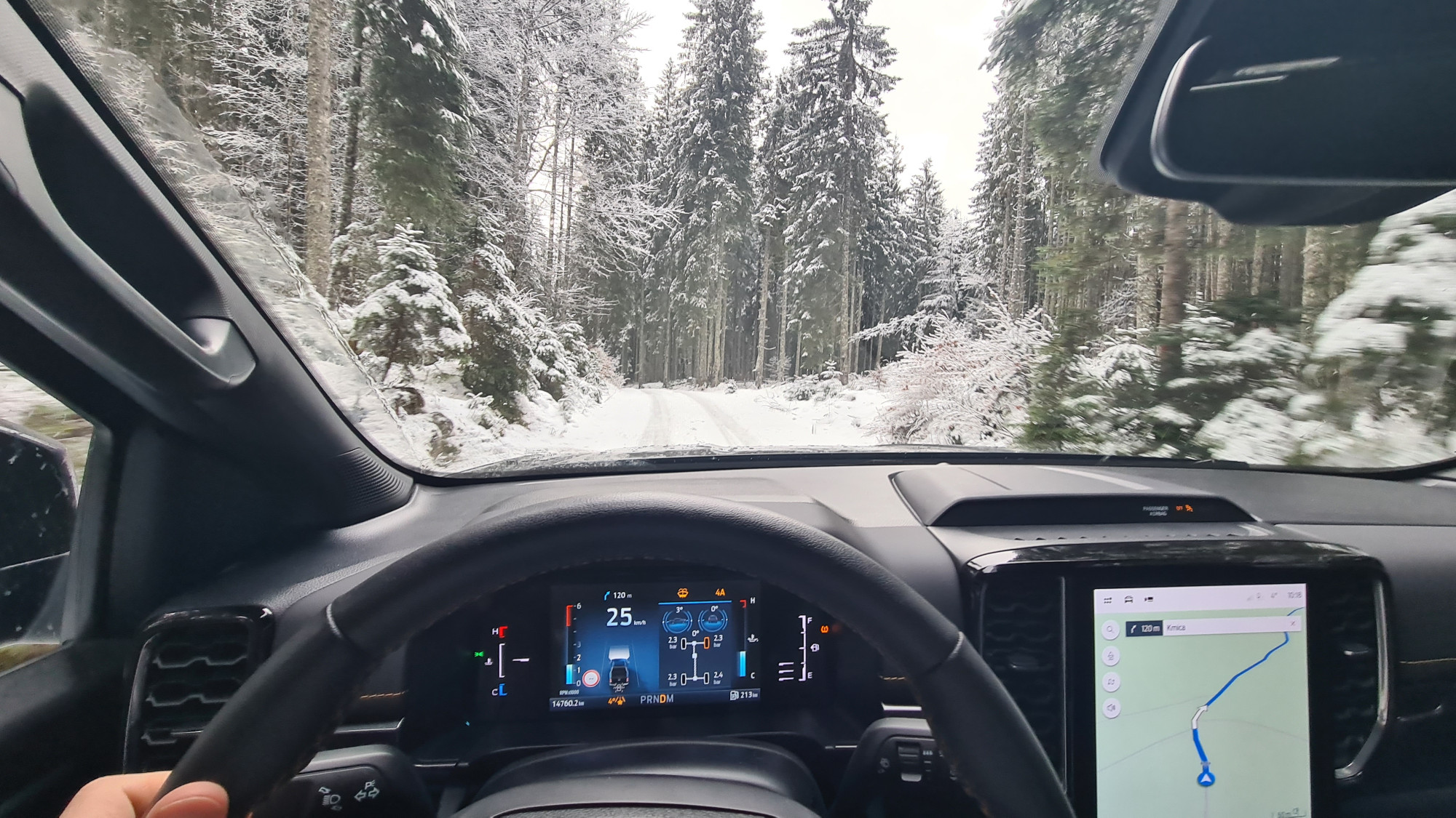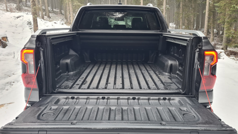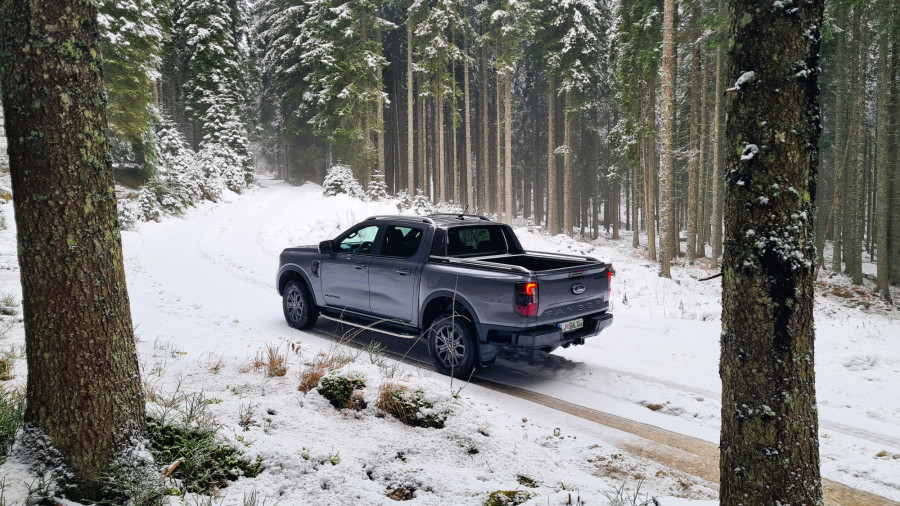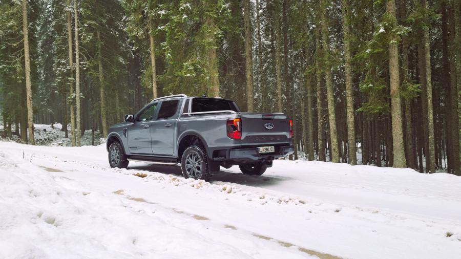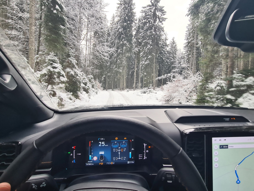 Различната графика на закривеноста на каросеријата, блокадата на диференцијалот и аголот на предните тркала, како и камерата од 360 степени, помагаат при искачувањето. „Ренџер“ е вистински каубој, што, за жал, не би можел да го кажам за себе. Пред да го предизвикам посериозно, се откажав. Стрмниот пат, калта и наклонот беа премногу за мене. Не го провоцирав навистина, можеби само малку го „исчешлав“. Патот покриен со снег беше вистинска шега за „ренџерот“. Дури и само со заден погон може да танцува во кривини.