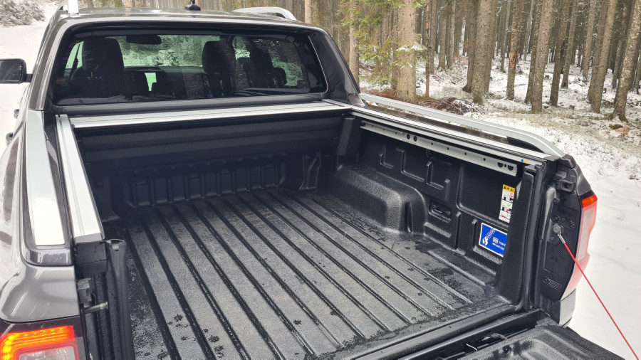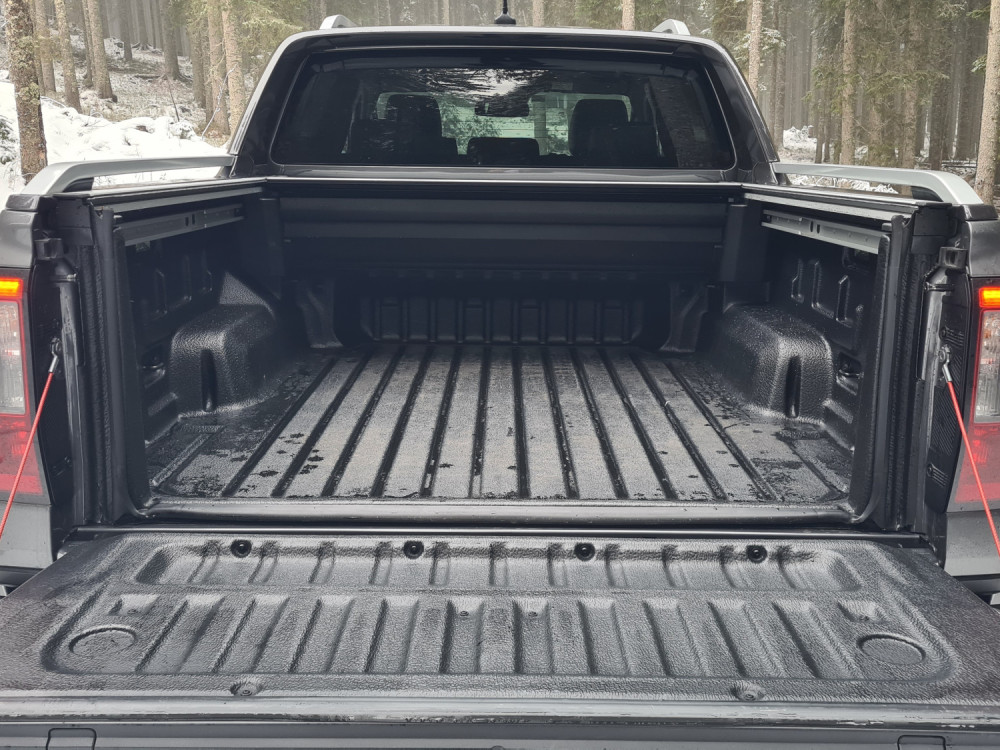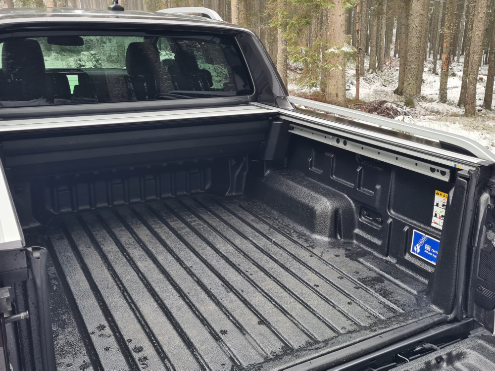 Вистинскиот простор за складирање е во кабината во багажникот. Тест-примерокот имал вграден електричен валјак, кој не е стандарден (3.320 евра) и го штити багажот од неовластени лица. Просторот е долг 1,56 метар и широк 1,22 метар, а во случај на валјак, висок околу половина метар. Тоа е доволно за да се смести европалета. Зад задните тркала има скалило за полесен пристап. Носечкиот капацитет на сандакот или багажот е илјада килограми. Просторот е опремен со дополнителен приклучок од 400 волти. По должината на работ на товарниот простор се поставени шини за монтирање на точките за прицврстување.