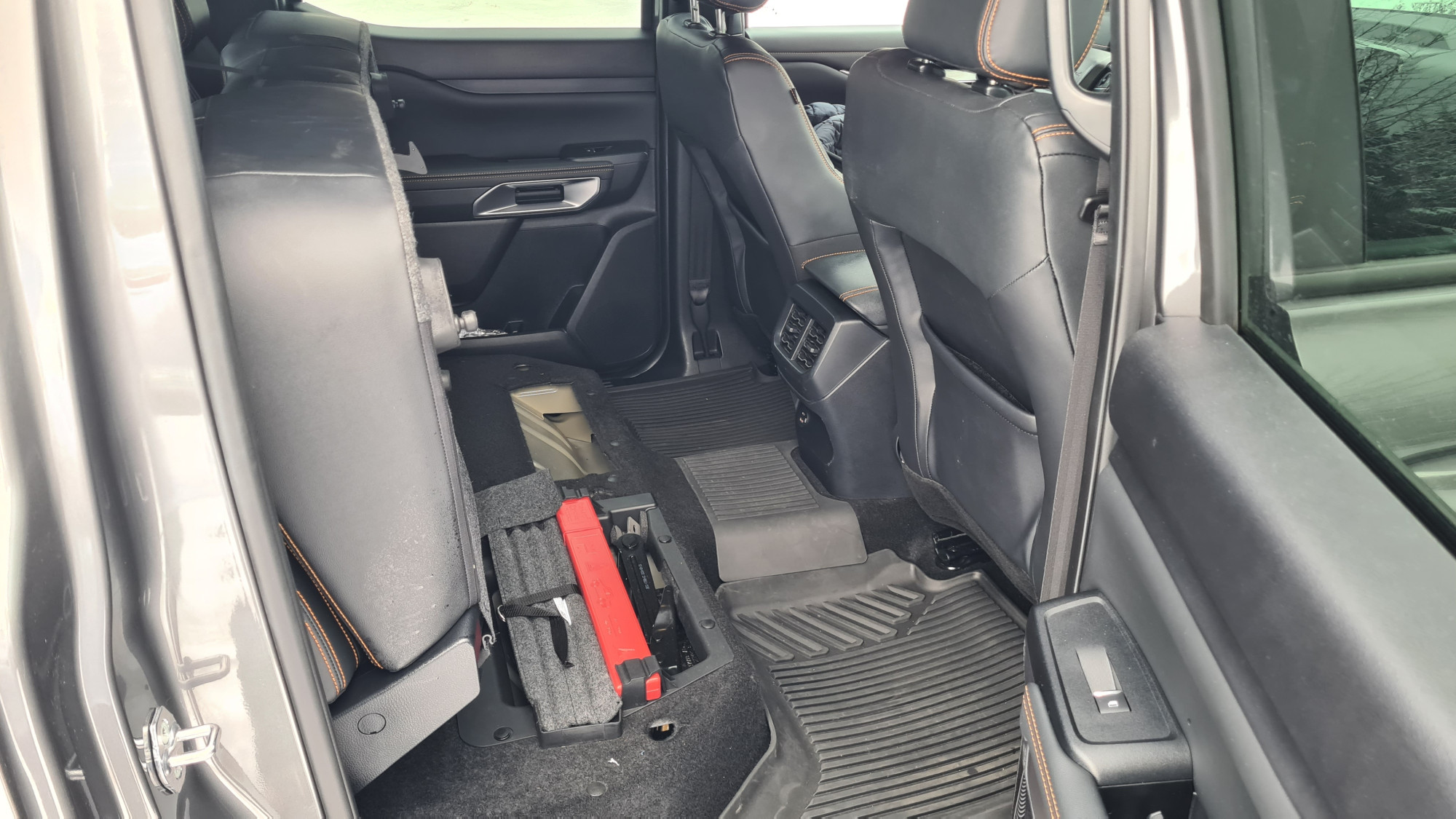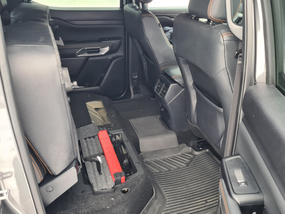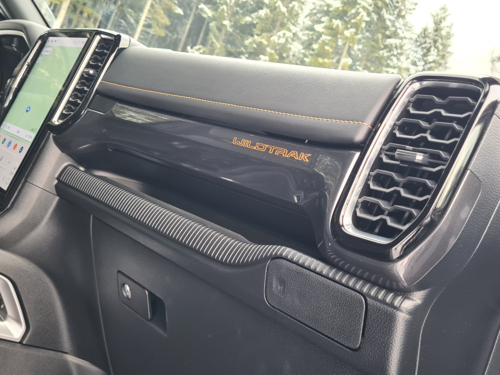 Изборот на материјали е соодветен. Акцентот не е на врвната удобност, туку на издржливоста. „Ренџерот“ што го тестирав во кабината беше сепак разгален со кожен ентериер, што е попријатно, иако не и луксузно. Прекинувачите и рачките се приспособени на посилен, машки зафат. Клима-уредот има вистински ротирачки прекинувачи, а има и класични копчиња за светлата. Многу практично ако возите со ракавици. Некои дискретни прегради и држачи за пијалаци се вградени во инструмент-таблата. Држачот за мобилен телефон пред рачката на менувачот е целосно неупотреблив, бидејќи мобилниот телефон лета веќе во првата кривина.