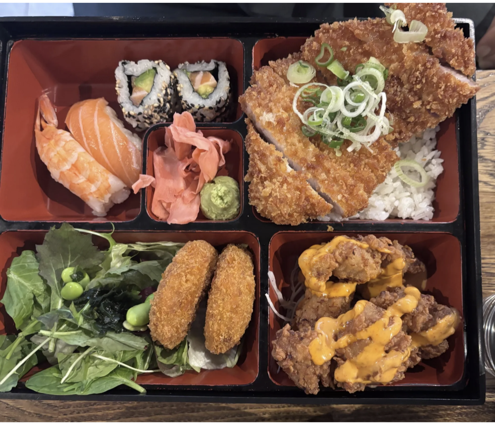 Експрес бенто кутијата (Express Bento Box) од 12 до 15 часот вклучува суши, крокети од тиква, крцкаво пилешко и особено сочно свинско катсу (£21.50).