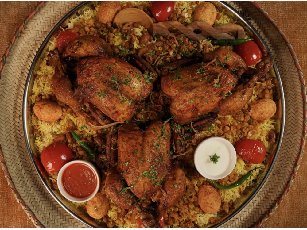 На менито се издвојуваат традиционални специјалитети како емиратско јагнешко тарид (90 дирхами) – бавно варено месо и зеленчук со зачини, како и вкусниот праун бирјани (110 дирхами). Тука има и помали залачиња како палестинска мусака со пилешко (60 дирхами) и бахреински ќебап луми (90 дирхами). Не се служи алкохол, но има креативни безалкохолни коктели, како дезерт роуз (55 дирхами) и ладен чај од хибискус (35дирхами). Популарен е и локалниот чај карак (15 дирхами), зачинет со цимет и кардамон. (gerbou.com)