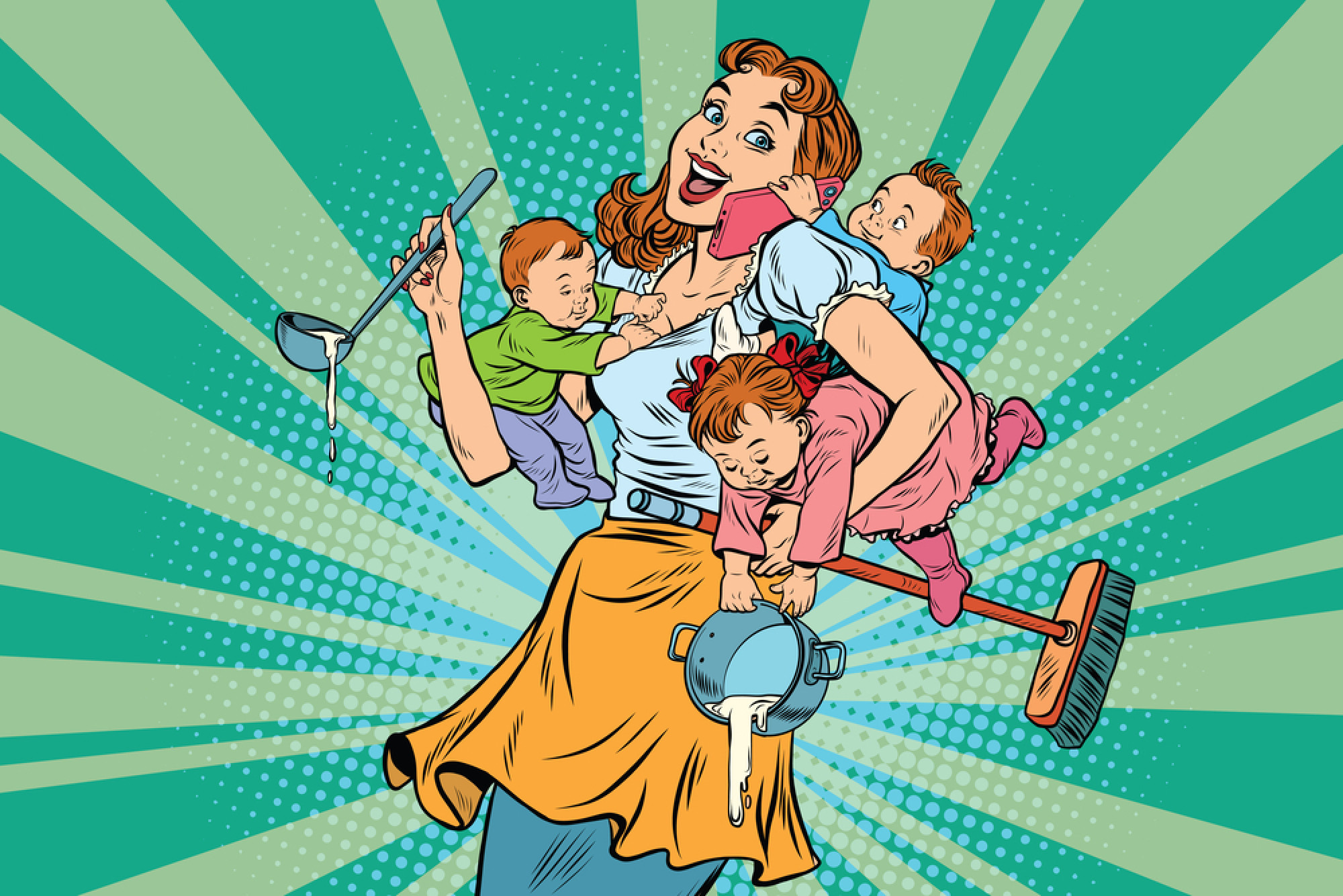За некои жени пресвртен момент е мајчинството. Бремена, Нијази се обидува „тивко да повраќа во шарените канцелариски тоалети“, а подоцна носи комбинезони за да го сокрие истекувањето на млекото. Ромолини води деловни телефонски разговори само една недела по породувањето, тајно стерилизирајќи шишиња за време на тимски состаноци. Според истражување на институтот „Брукингс“, вработена мајка денес поминува повеќе време во грижа за децата отколку типична домаќинка во 1965 година. Симптоматично е и тоа што воената дописничка Ребека Вест, според книгата „Ѕвездена и бунтовна“ (Starry and Restless), издание на „Фарар, Страус и Жиру“ (Farrar, Straus & Giroux), од авторката Џули Кук, го испратила својот син во интернат кога имал три години.