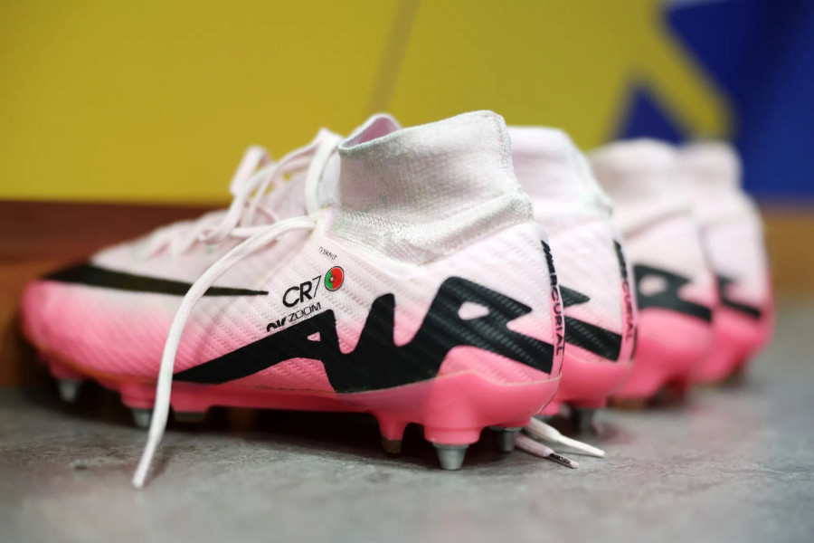 Фудбалските копачки „португал КР7“ на Роналдо. Фотограф: Алекс Пантлинг / УЕФА / Гети имиџис
