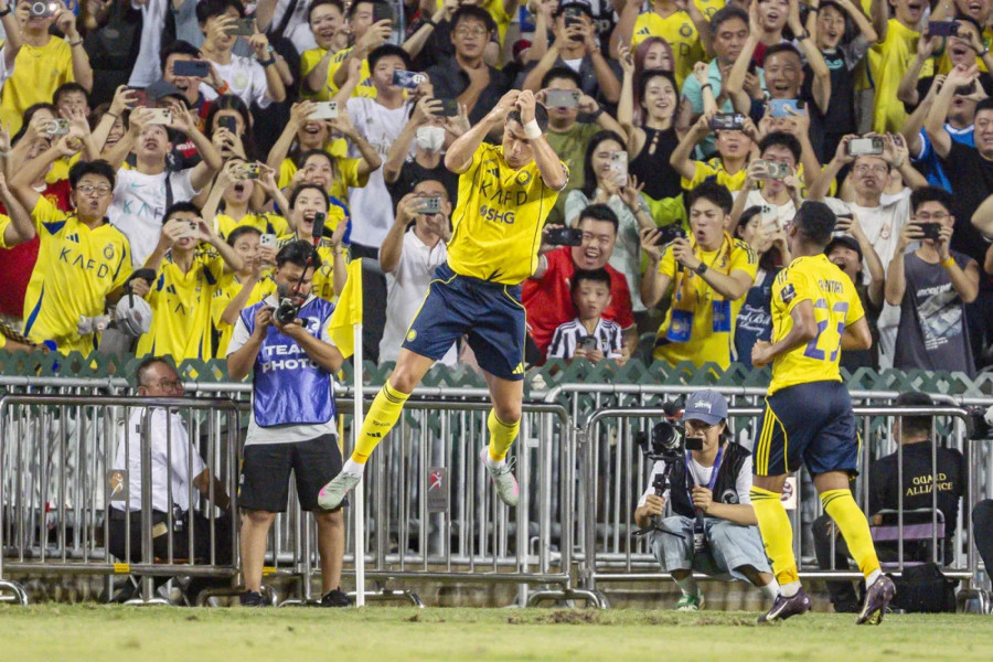 Роналдо по постигнат гол за Ал Наср во финалето на Суперкупот на Саудиска Арабија против Ал Ахли на стадионoт во Хонгконг на 23 август. Фотограф: Ју Чун Кристофер Вонг / Евроазија спорт имиџис / Гети имиџис