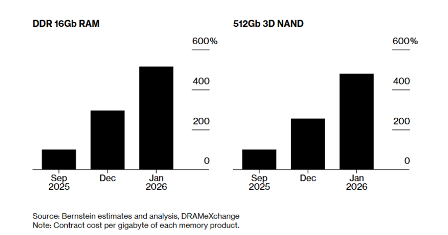 Марк Ли, аналитичар во „Бернштајн“ (Bernstein) што ја следи полупроводничката индустрија, предупредува дека цените на мемориските чипови одат „параболично“. Иако тоа ќе донесе раскошни добивки за „Самсунг“, „Микрон“ и „СК Хајникс“ (SK Hynix Inc.), остатокот од електронскиот сектор ќе плати висока цена во наредните месеци.