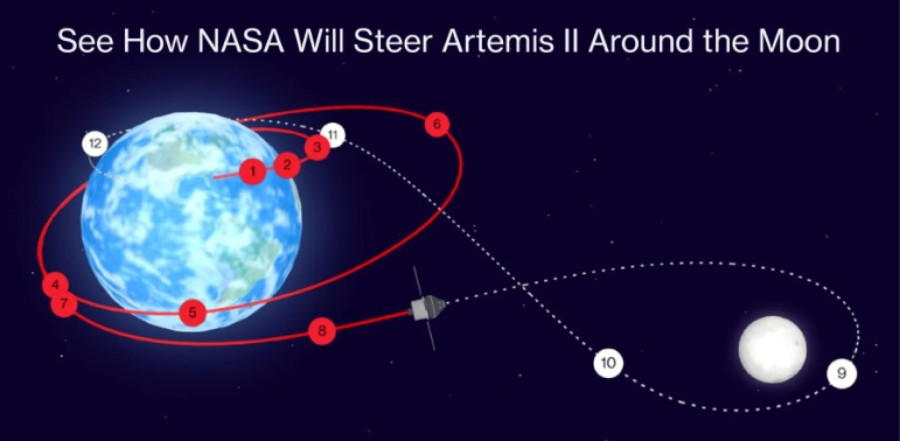 Екипажот ќе помине околу четири дена патувајќи кон Месечината, по што ќе мине зад нејзината далечна страна - дел кој никогаш не е видлив од Земјата. На 6 април е планирано блиско прелетување над лунарната површина.